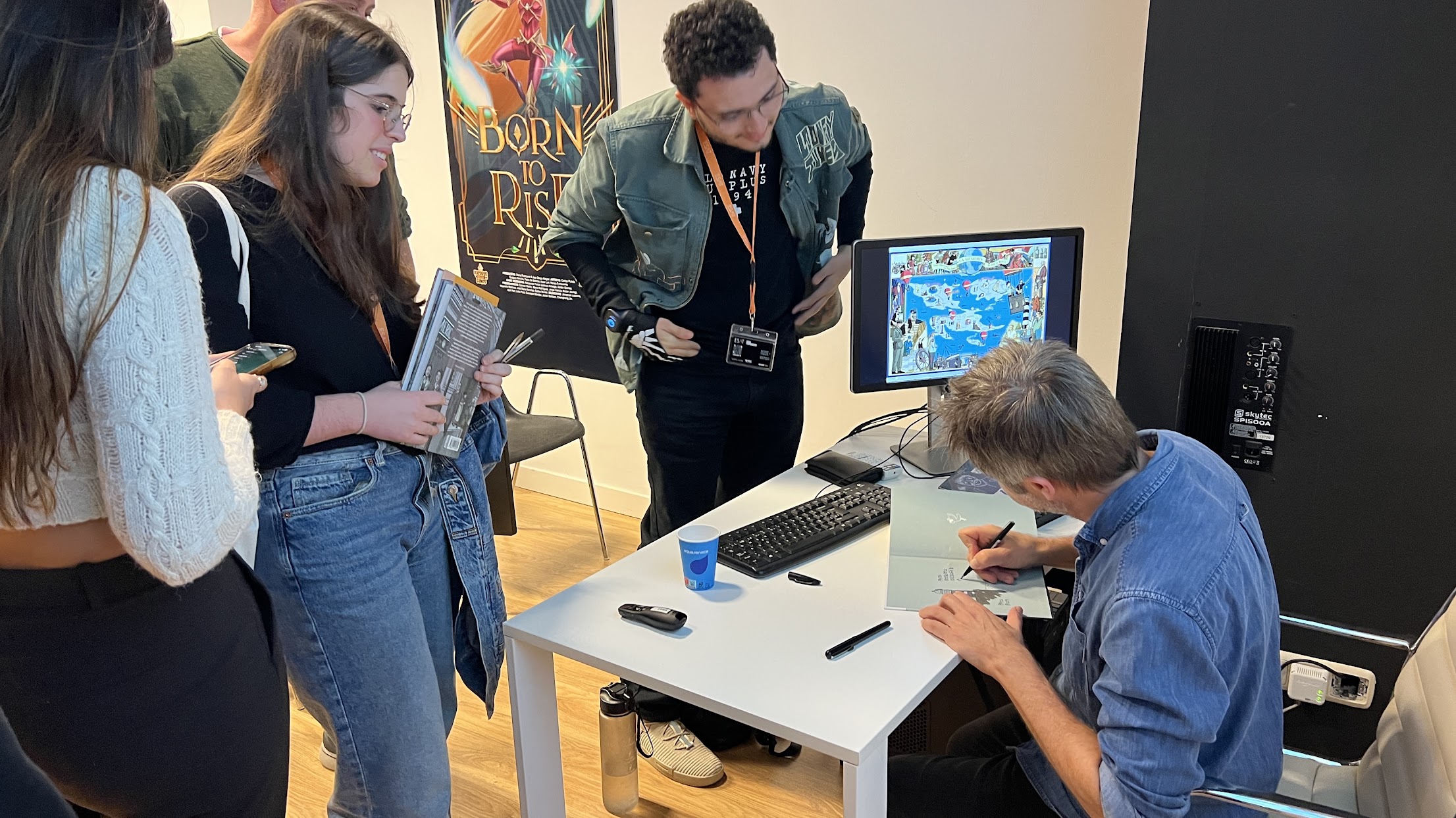 Desde ESAT seguimos apoyando la formación de nuevas generaciones de ilustradores. La jornada concluyó con un momento muy especial: Paco Roca firmó amablemente los ejemplares que los alumnos habían traído de sus casas, un gesto que convirtió la visita en una experiencia memorable.