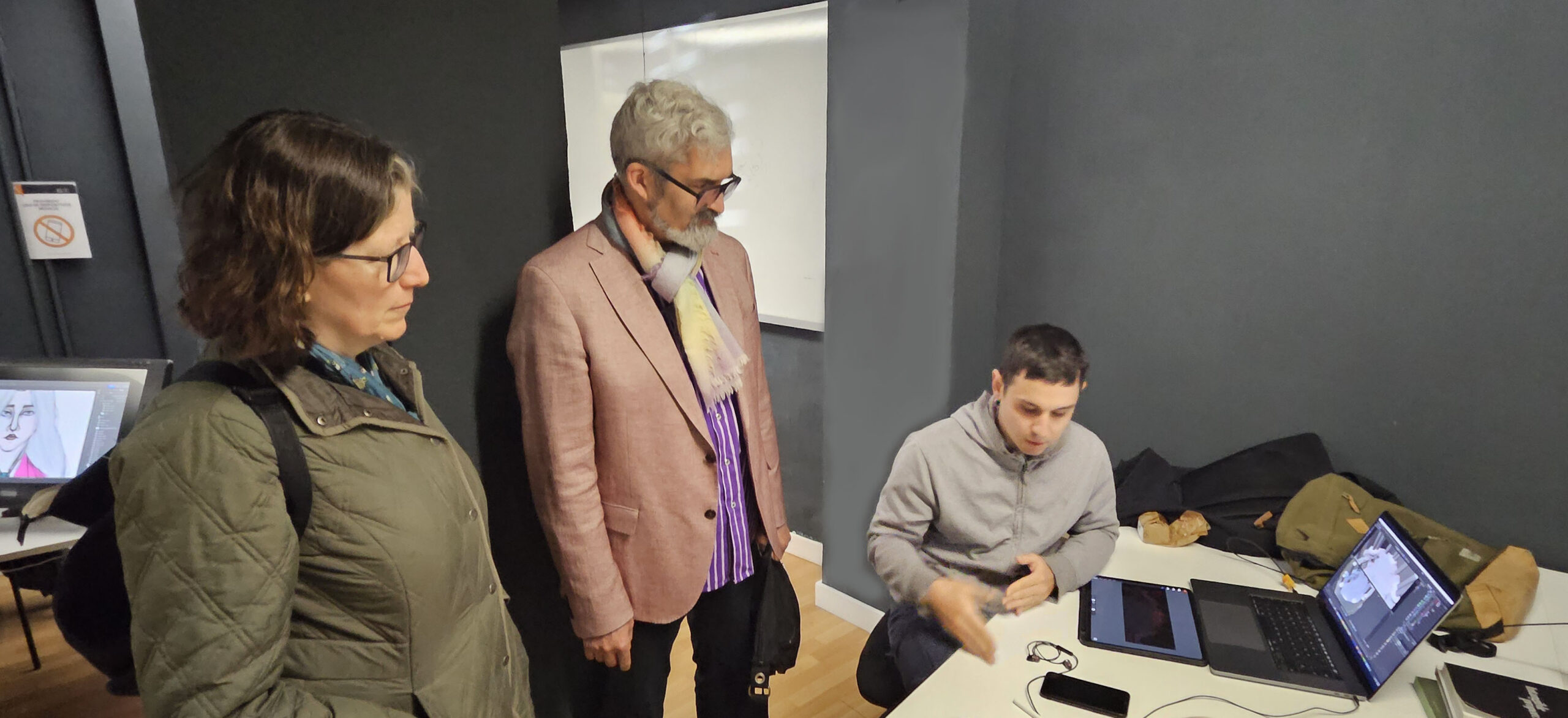 Durante la jornada, contamos con la presencia de Blair Stevenson, nuevo decano para asuntos académicos; Simone Pilon, directora ejecutiva; y Manuel Costa, director de relaciones institucionales de Berklee Valencia Campus. La delegación pudo conocer de primera mano la calidad, el nivel técnico y la ambición creativa de los proyectos desarrollados por los alumnos de tercer curso de ESAT en las especialidades de Diseño Gráfico y Desarrollo de Videojuegos.